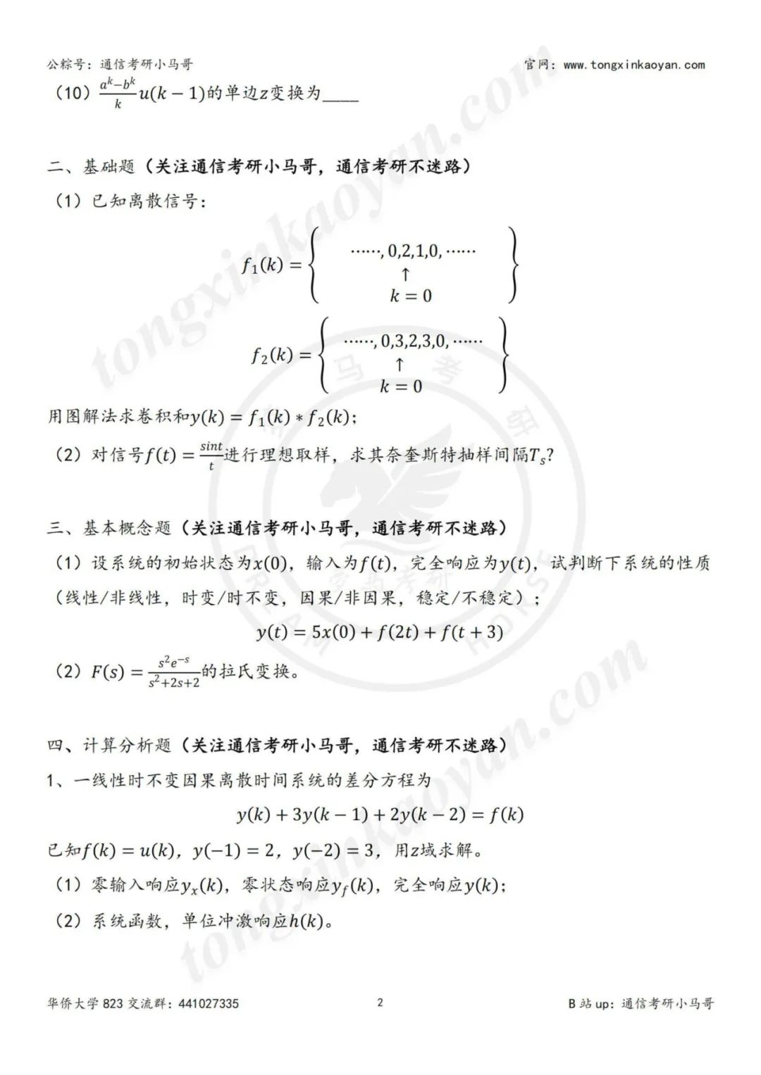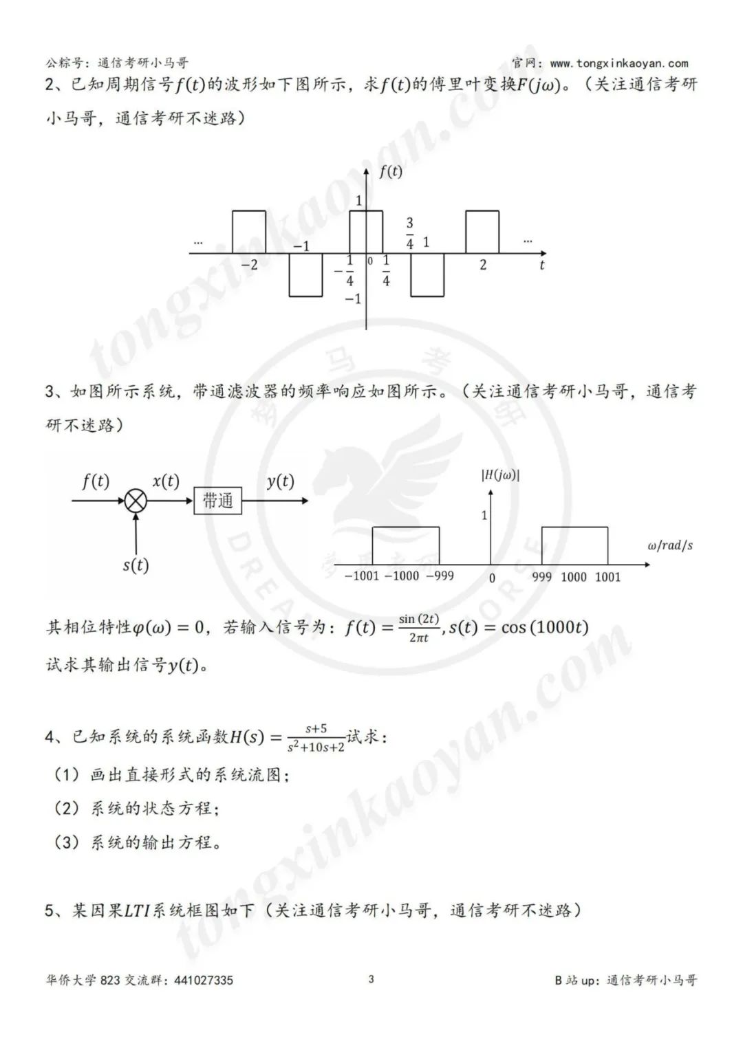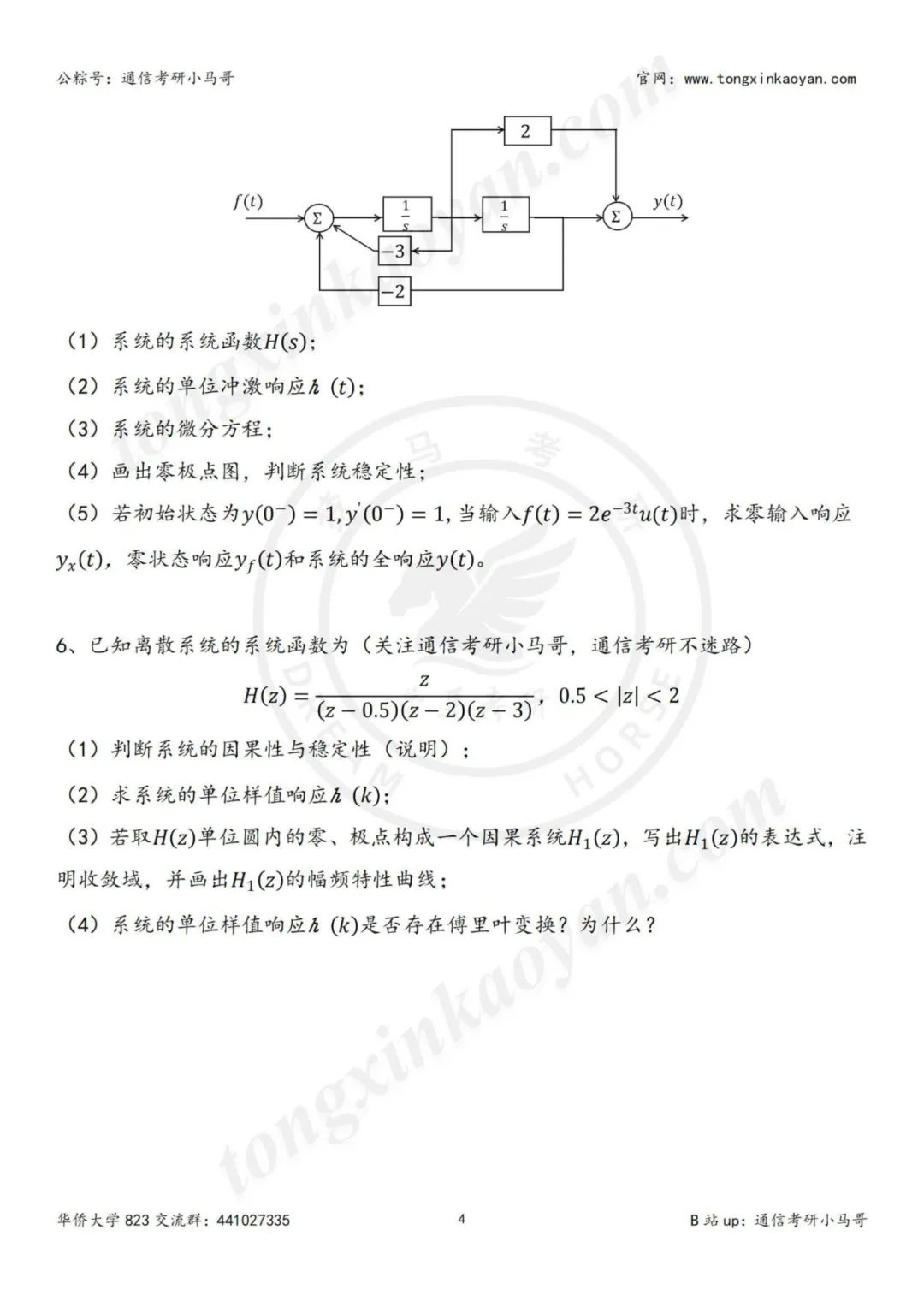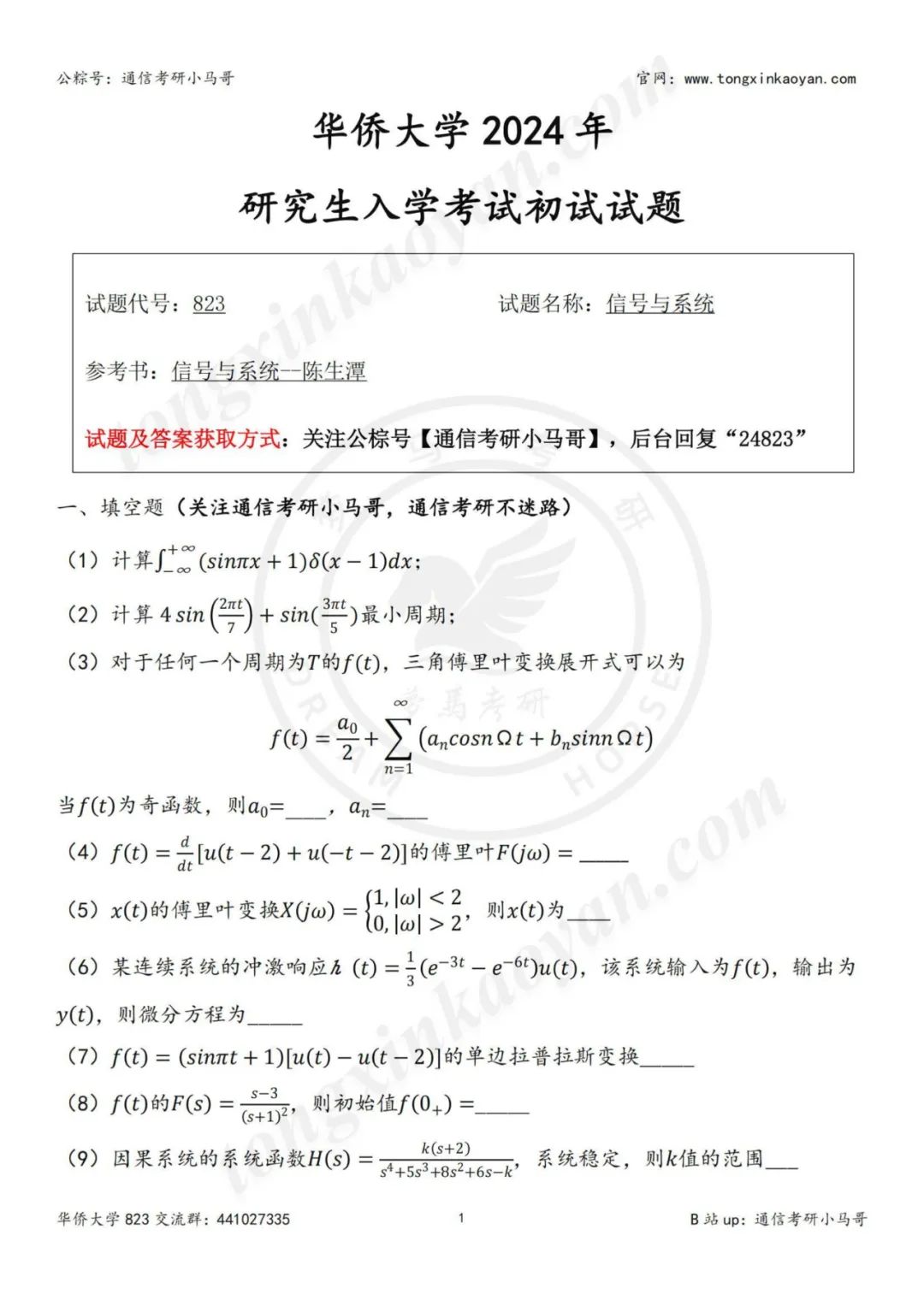 今天分享的是华侨大学823的信号与系统试题及解析。