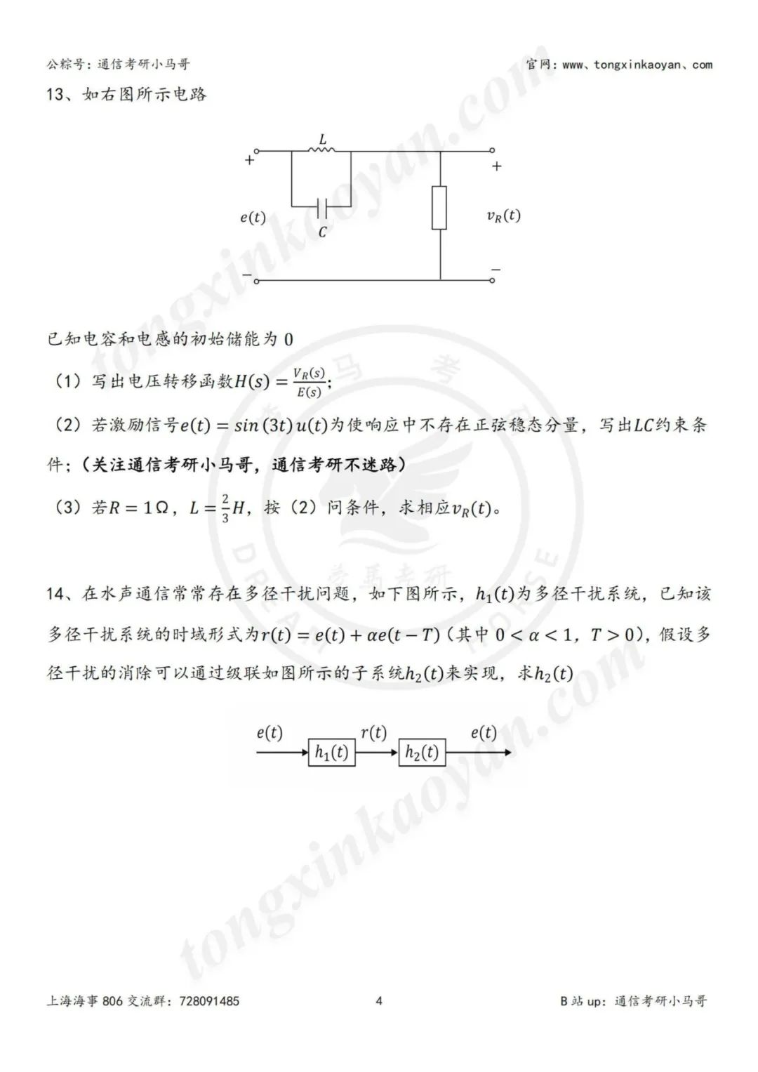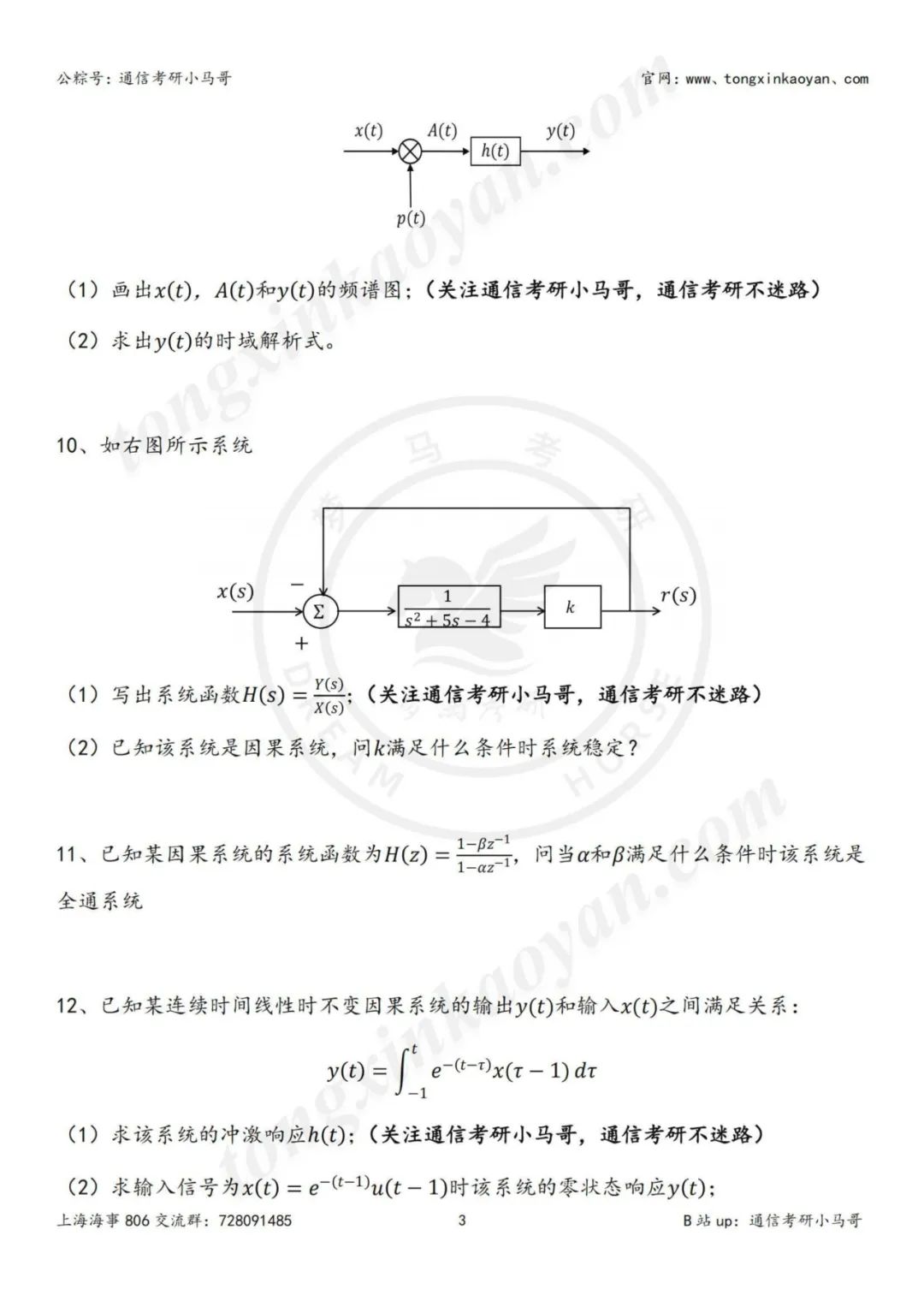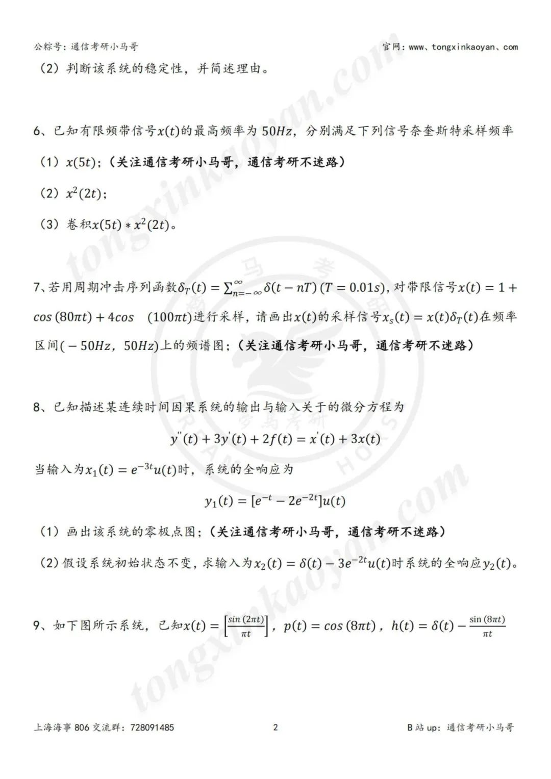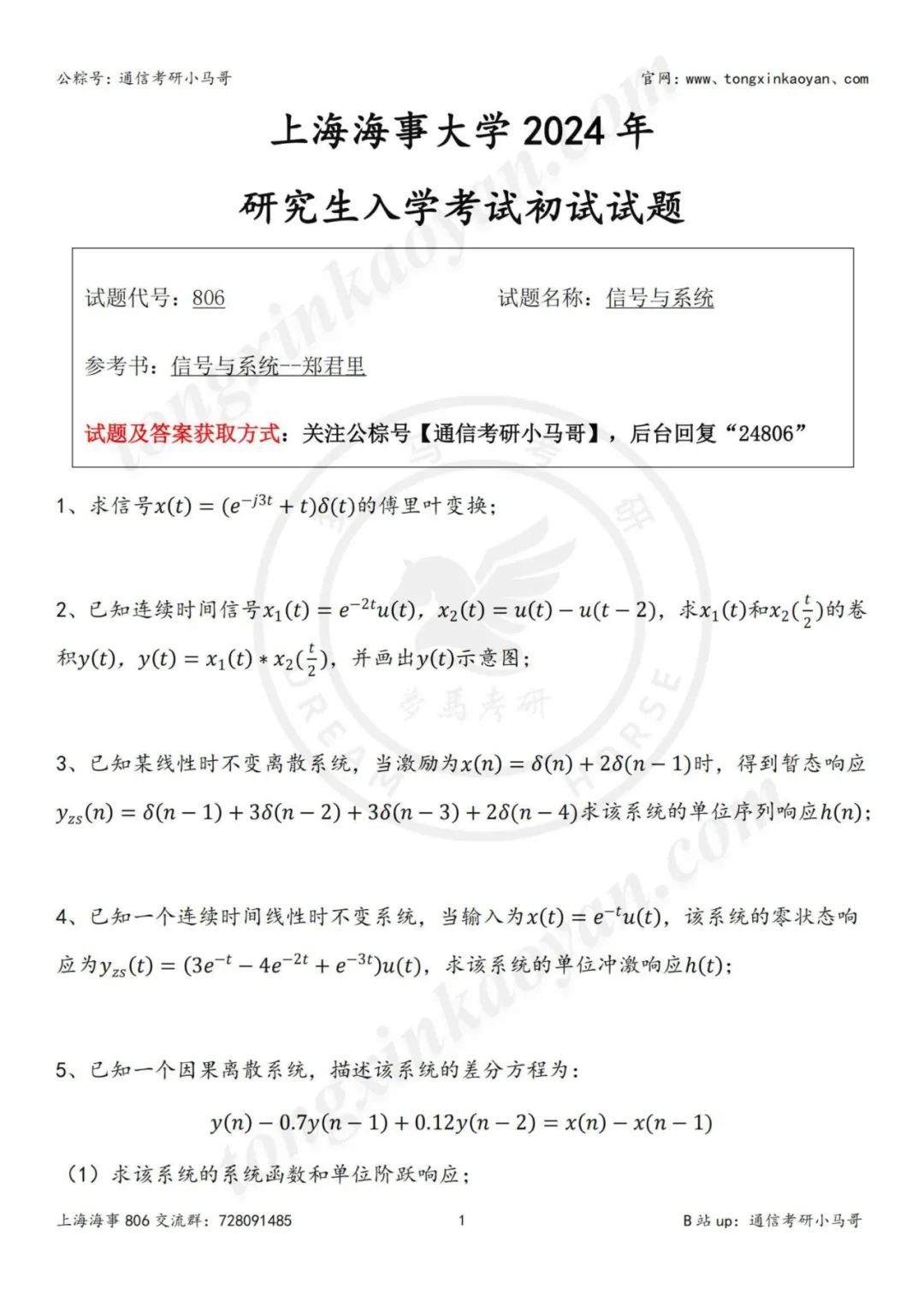 今天分享的是上海海事大学806的信号与系统试题及解析。