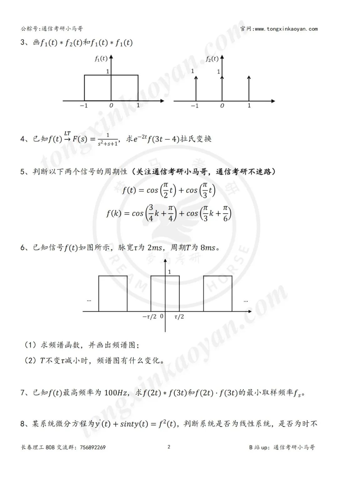 冲激函数的性质 奈奎斯特抽样定理 阶跃信号 幅频图的画法 信号波形图 傅里叶变换以及逆变换的求解 判断系统稳定性 信号卷积计算 零极点图 求解信号拉氏变换以及逆变换 求解信号Z变换以及逆z变换 拉氏变换与傅里叶变换的关系 周期矩形脉冲的特点 线性、时变、因果以及稳定性的判定 系统的频率响应的求解 三大变换的基本性质,比如微分和积分性质 动态电路的s域模型 最小取样频率 框图的正确理解 特征稳态输入法