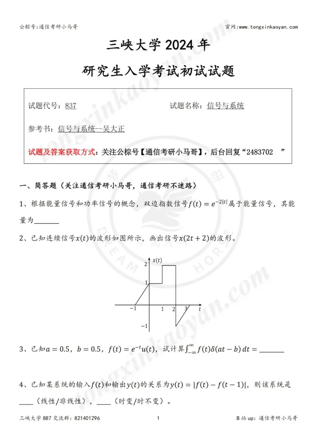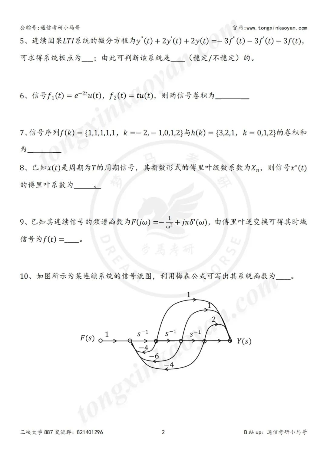 能量求解公式 冲激函数的性质 根据波形求解信号表达式 傅里叶变换以及逆变换的求解 判断系统稳定性 连续以及离散信号卷积计算 零极点图 四大性质判定 傅里叶反变换公式 零状态响应的求解 求解信号拉氏变换以及逆变换 求解信号Z变换以及逆Z变换 频谱图 稳定性判断 卷积公式 三大变换的基本性质 冲激函数的基本性 尺度变化和时移对波形的影响 框图的正确理解 零状态和零输入响应的求解 信号系统框图 真题详细解析领取,请于公众号后台回复:2483702 留个点赞和在看再走呀~ 你们是我更新的唯一动力! 请做完再看解析哦~