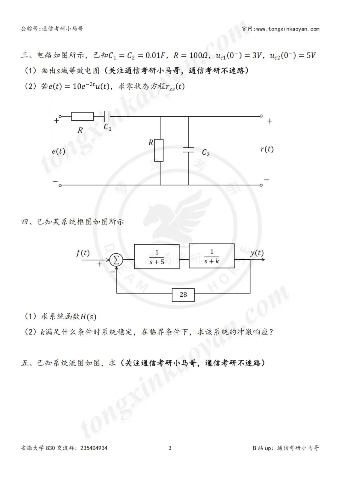 【信号三天冲刺营】 最新强化冲刺课程+配套讲义免费领 3天时间冲刺3个最最最提分的核心内容 每天配套课程+谷哥手写笔记+课后作业 每天都有高分上岸学长学姐免费答疑 (本期体验课限额200人参与!) 扫码添加助教,回复【冲刺营】~ 本套试题难度分析: ①安徽大学830/841专业课的最高分为085403集成电路工程的139分,最低分为085401新一代电子信息技术和085403集成电路工程的69分,差距也是如此的大,光一个专业课就达到70分,各个专业均分都在100分左右,考安大的同学怎么也要奔着110分去! ②该院校考察的是信号和数字电路两部分,从信号部分来看题目考察的知识点基础,但是考察的还是很全面的,有电路模型以及状态方程。