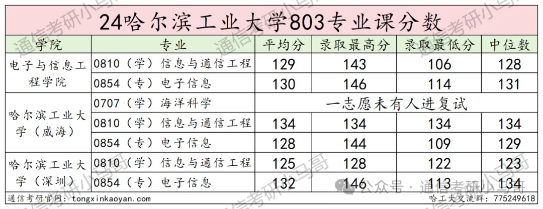 本套试题难度分析:①24年哈工大三个校区的803专业课平均分均在130分左右,与23年相差不大。其中威海校区的学硕信息与通信工程专业课平均分最高,为134分,深圳校区的学硕信息与通信工程专业课平均分最低,为125分,两者相差9分。