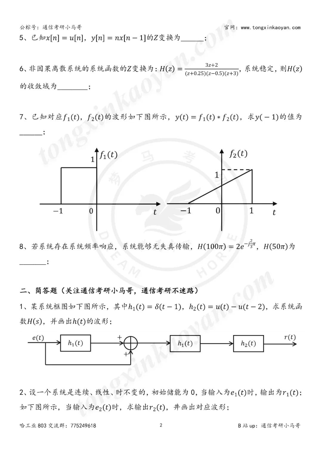 ②该院校是考察数电和信号与系统的,这里分享的是信号系统部分,从信号与系统来看考察的题目还是比较简单的,考察的知识点还是在三大变换上,虽然院校参考教材为郑君里,但是很多吴大正的课后题影子,所以大家只要是国内教材,做绝杀32的非奥本部分,非常重要!其他教材最好也做一做! 23年的真题我都做过,解析大家下面自取:
