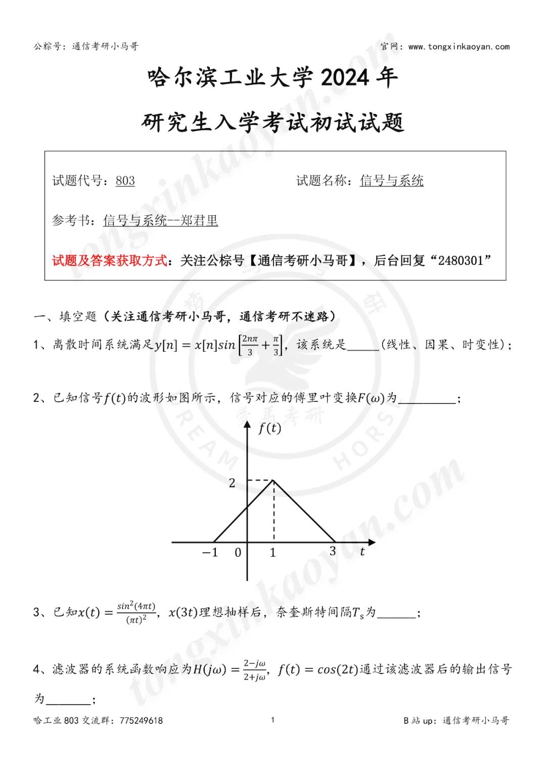 关于真题班 今年小马哥联合了一位哈尔滨工业大学803上岸的学长精心制作了一个哈尔滨工业大学803的真题班。 目前专业课正在冲刺阶段,院校真题尤其重要,哈尔滨工业大学803真题班不仅有十年的纸质真题,更有高分学长对十年真题进行详细的讲解,帮助你吃透真题,同时学长也会在真题群里面进行真题答疑,感兴趣的同学可以了解。