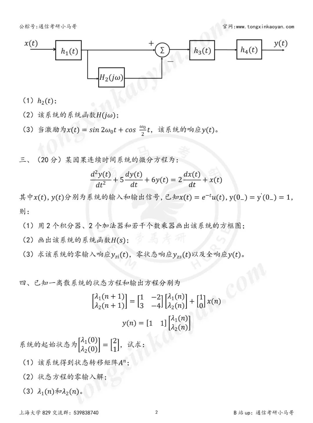 二、重点勾画 信号基本运算 指数形式的傅里叶级数 傅里叶变换性质 零状态响应的求解 零输入响应的求解 冲激响应的求解 拉氏变换 系统函数求解 真题详细解析领取,请于公众号后台回复:24829 留个点赞和在看再走呀~ 你们是我更新的唯一动力! 请做完再看解析哦~