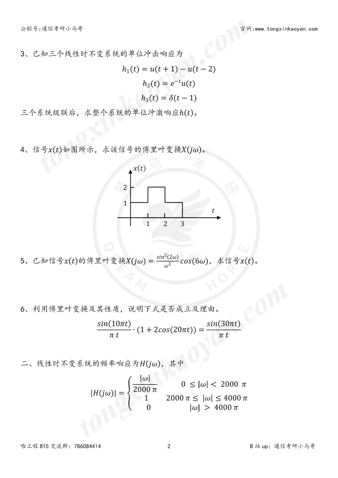 信号基本运算 单位阶跃响应 级联系统 傅里叶变换以及逆变换的求解 傅里叶变换的性质 周期信号的傅里叶变换 频率响应 判断系统稳定性 信号卷积计算 求解信号拉氏变换以及逆变换 求解信号Z变换以及逆z变换 三大变换的基本性质,比如微分和积分性质 冲激函数的基本性质 冲激串采样 框图的正确理解 真题详细解析领取,请于公众号后台回复:24815 留个点赞和在看再走呀~ 你们是我更新的唯一动力! 请做完再看解析哦~