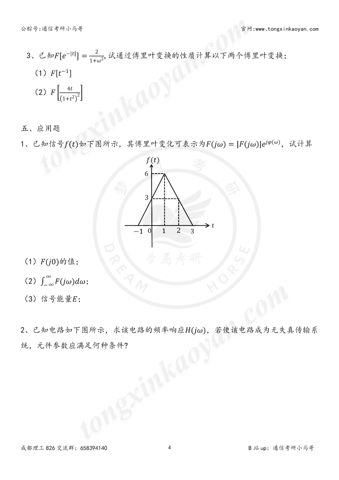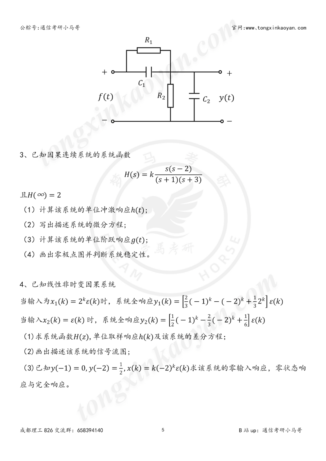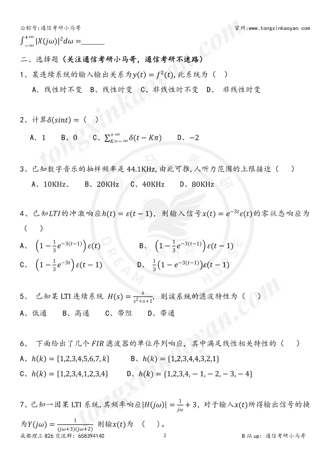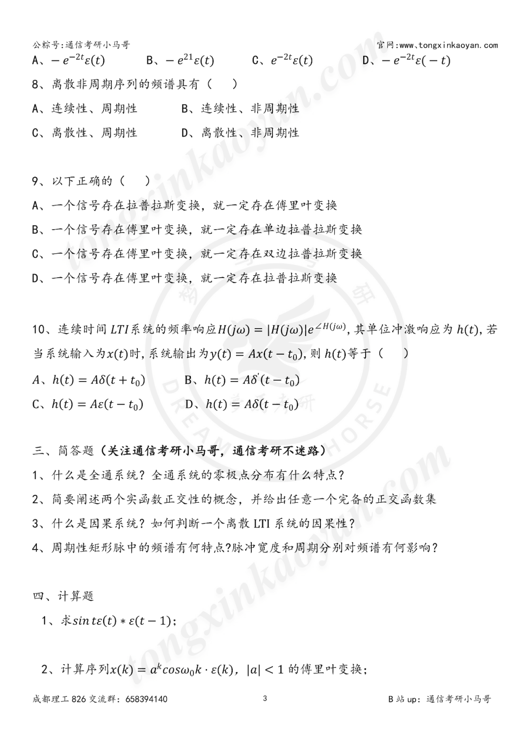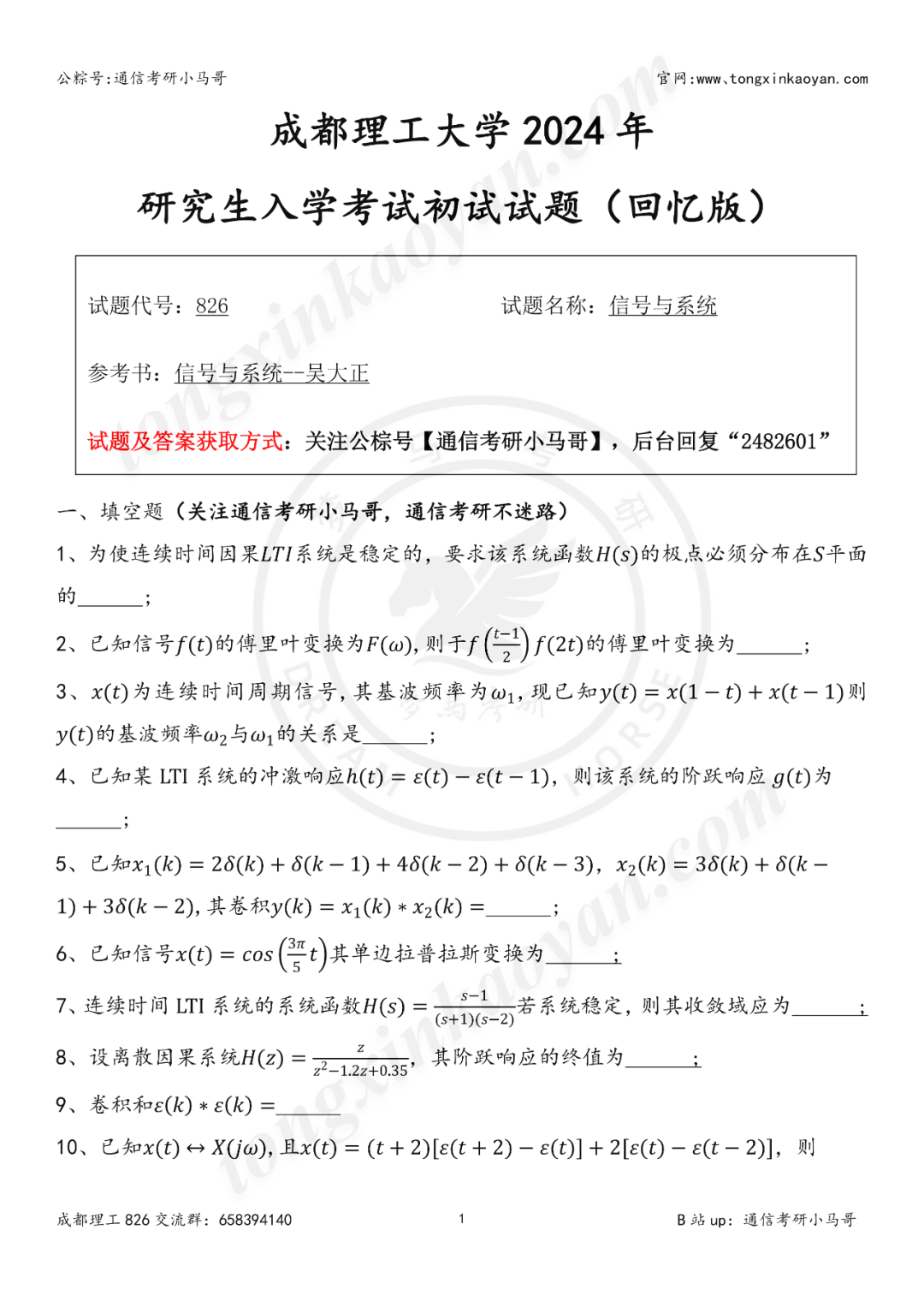 今天分享的是成都理工大学826的信号与系统部分的试题及解析。