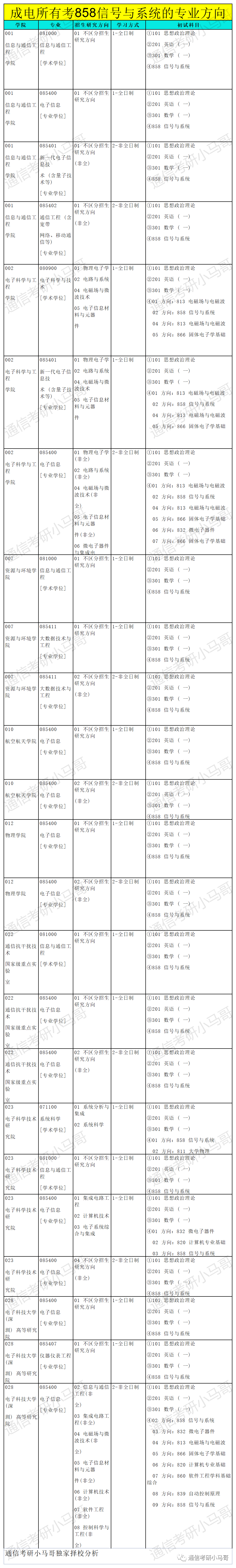 电子科技大学考信号与系统的专业方向很多,主要只做信通院的招生情况分析,其他专业课为信号与系统的专业方向在图2中展示。划重点:学硕专硕均为数一、英一。