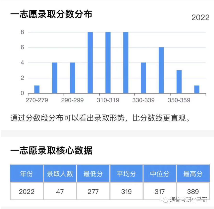 图9:22年通信工程录取分数柱形图(来源:公众号通信考研小马哥)
