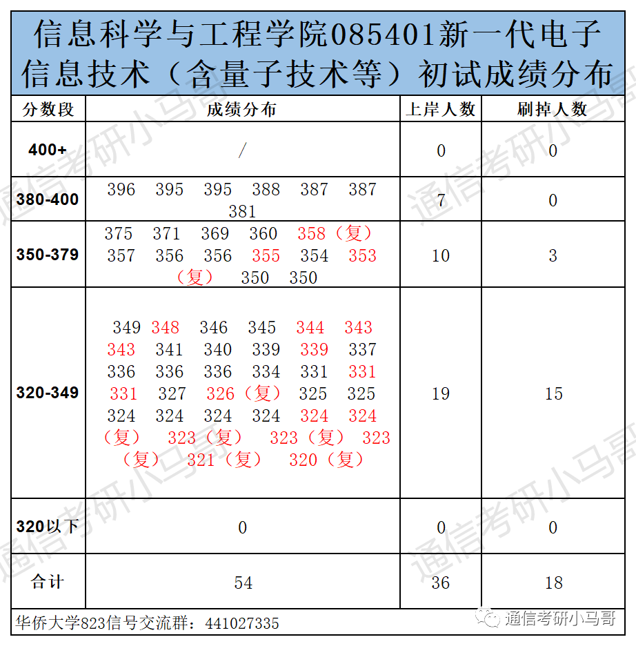 ③信息科学与工程学院085401新一代电子信息技术(含量子技术等)复试大多数刷掉的都是低分选手,但是其中有一个358和353由于复试不及格被刷,非常可惜。华侨大学专硕比较卷,350+比较稳,其他分数必须稳扎稳打!